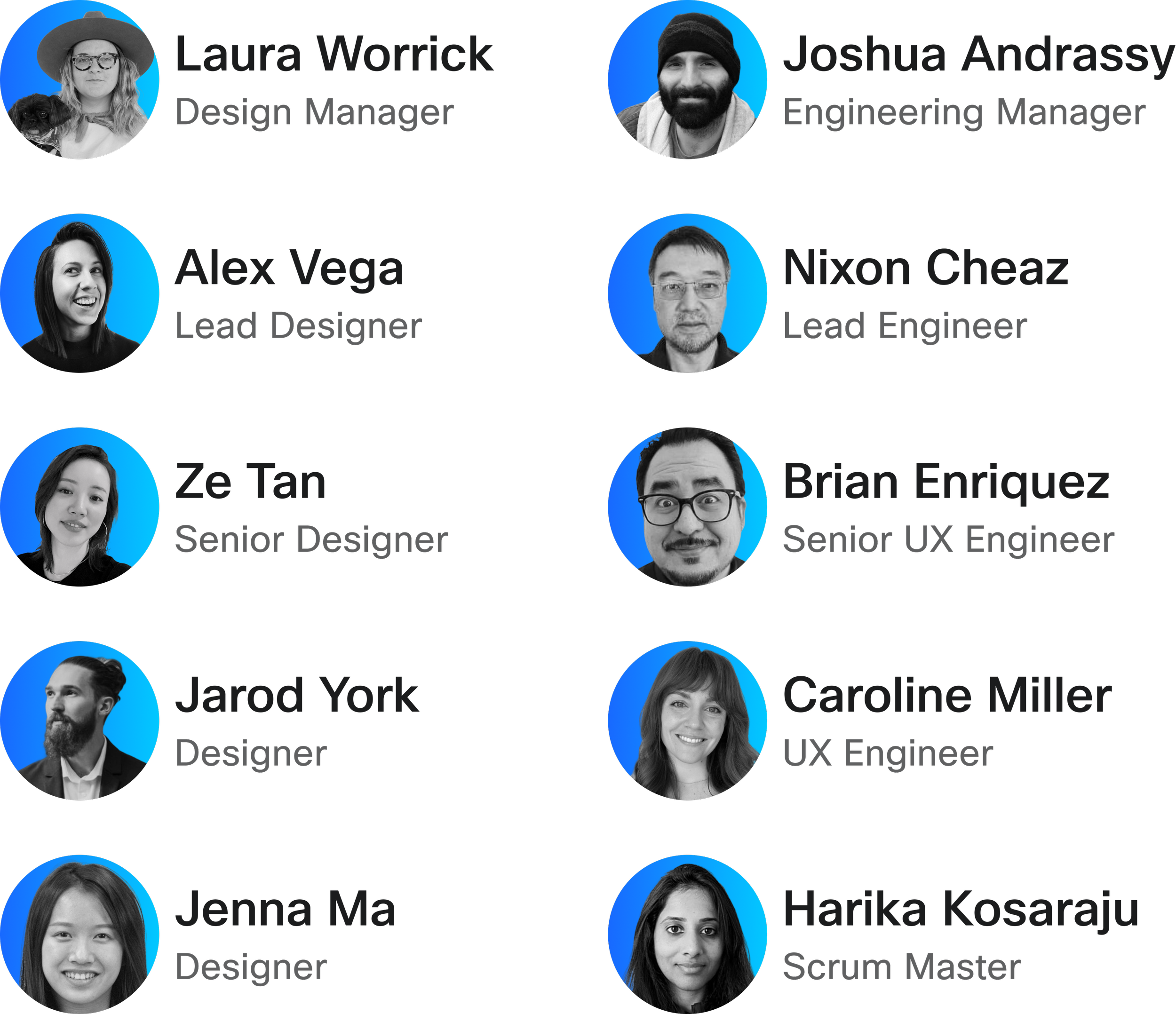 1 Engineering manager, 3 UX engineers, 5 product designers, 1 scrum master